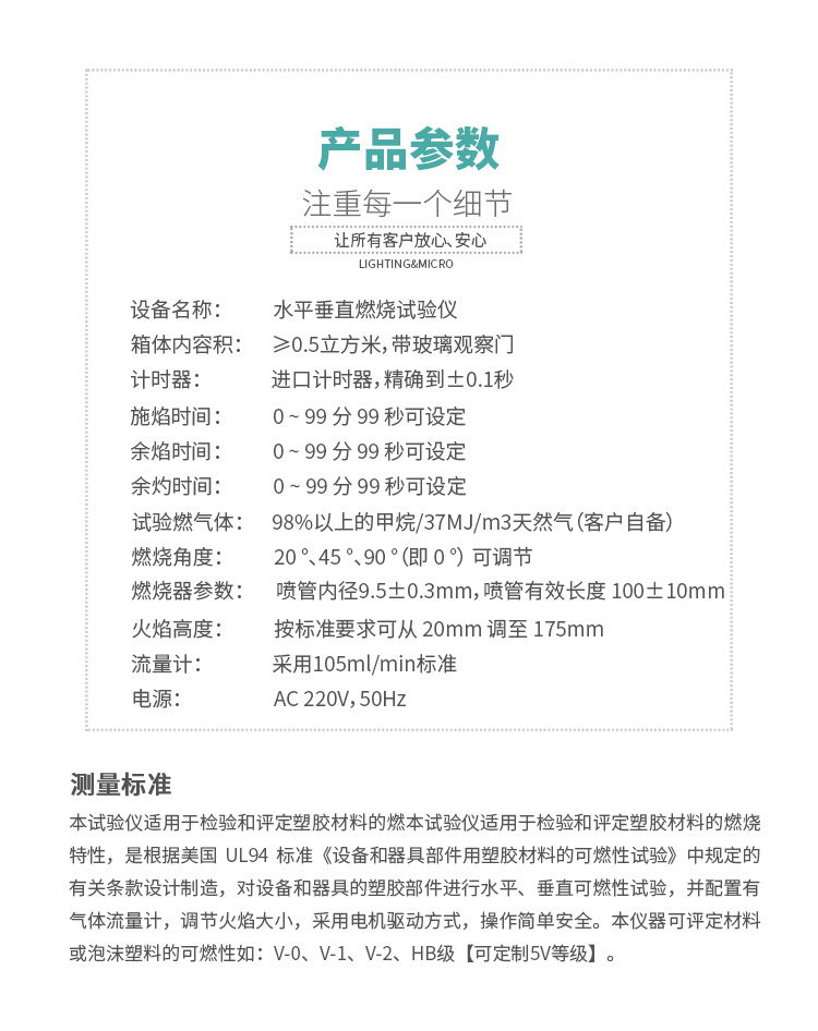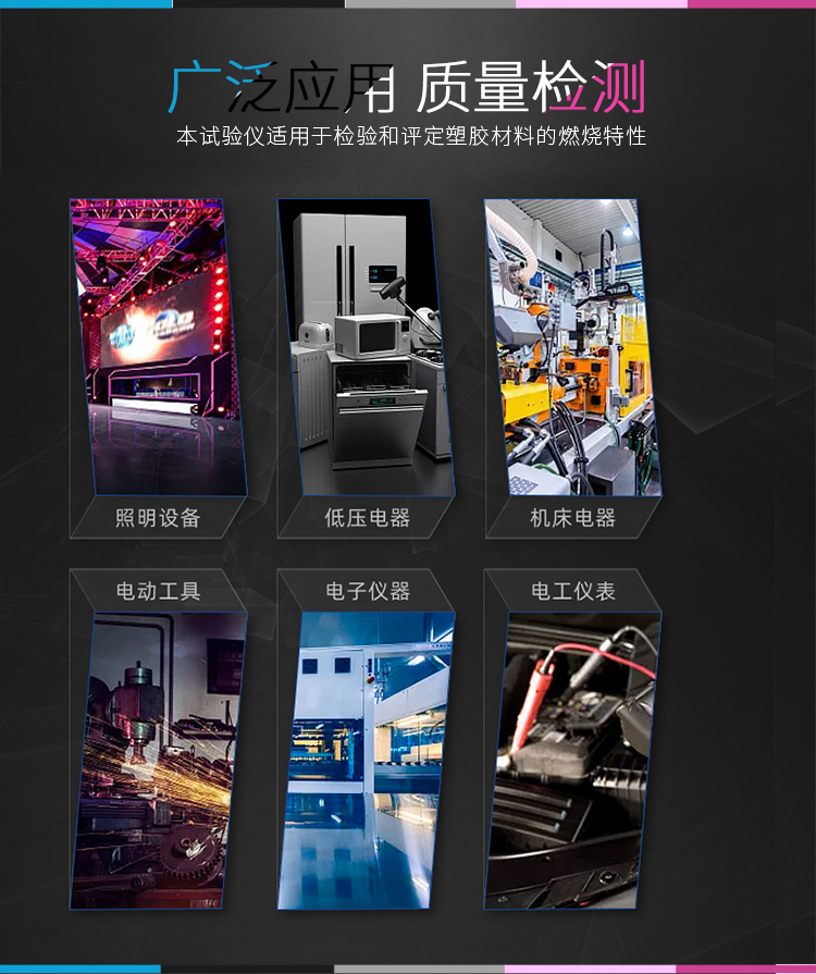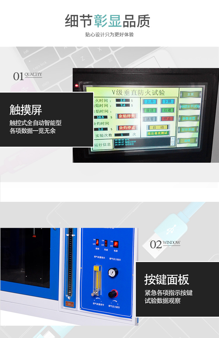 產(chǎn)品簡介: 1、水平垂直燃燒試驗主要參照UL 94-2006、UL1581\UL13\UL444\UL1655\CAS之FT-1.、IEC 60695-11-4 、IEC 60695-11-3、GB/T5169-2008系列等標(biāo)準(zhǔn)采用規(guī)定尺寸的本生燈 (Bunsen burner) 和特定燃氣源